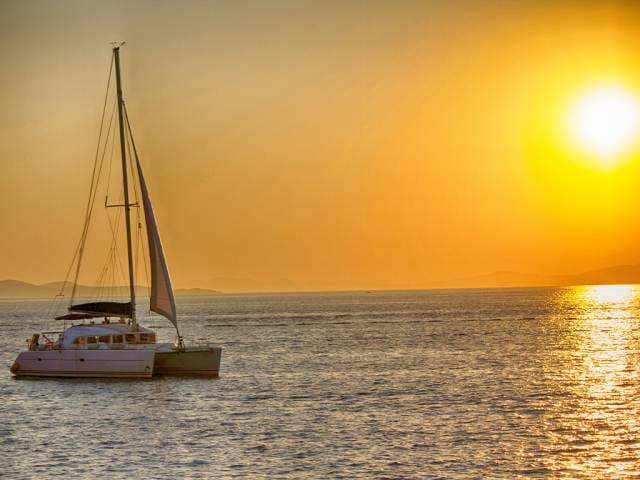 We continue along the Caldera coastline to the Volcanic islands and the famous Hot Springs, for snorkeling and swimming. An overture of the volcano, which has shaped the entire island of Santorini! While sailing along the beautiful coastline, you will be left breathless as you admire the unique Caldera. We continue to the famous he Red beach, the White Beach, the Black Mountain beach and the Light House, south of the Caldera, where we make our last stop for dinner complemented with wine and drinks. Before reaching the we admire the spectacular colors of the world’s famous Santorinian sunset…The perfect ending to a magnificent cruise!